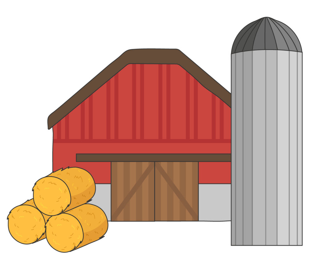 | Silo | En stor behållare som ser ut som ett rör, där t.ex. vete kan förvaras. Se bilden i steg 2. |