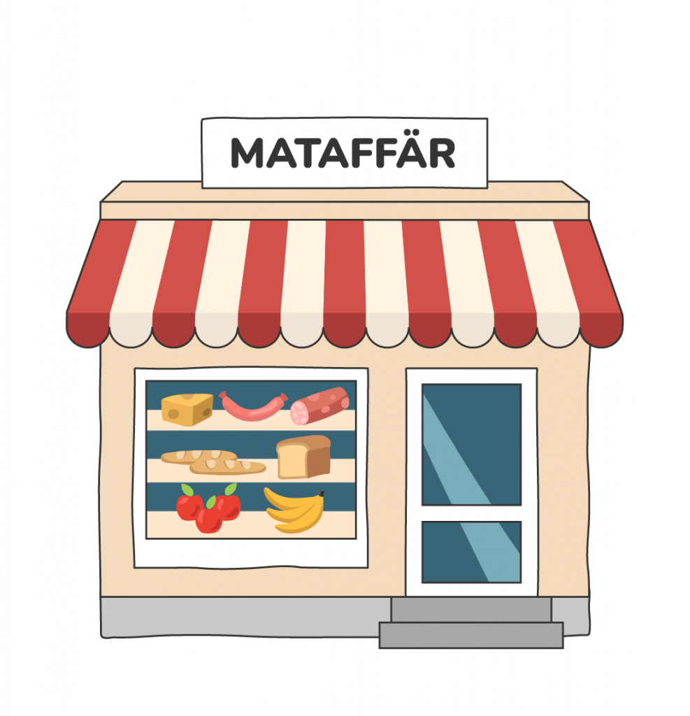 Paketet med pasta skickas nu från fabriken till mataffären. Från Italien till Sverige fraktas pasta mest med tåg. Inom Sverige och fram till butikerna transporteras den med lastbil. I mataffären finns inte bara pasta utan även många olika sorters mat som tillverkats i Sverige eller utomlands. I Sverige tillverkar vi till exempel vetemjöl, socker och mjölk. Men vi kan inte odla bananer, kokosmjölk och ris, så det måste vi köpa från varmare länder som Ecuador och Thailand. Många typer av mat behöver förvaras i kylskåp eller frys, och det kräver mycket energi.