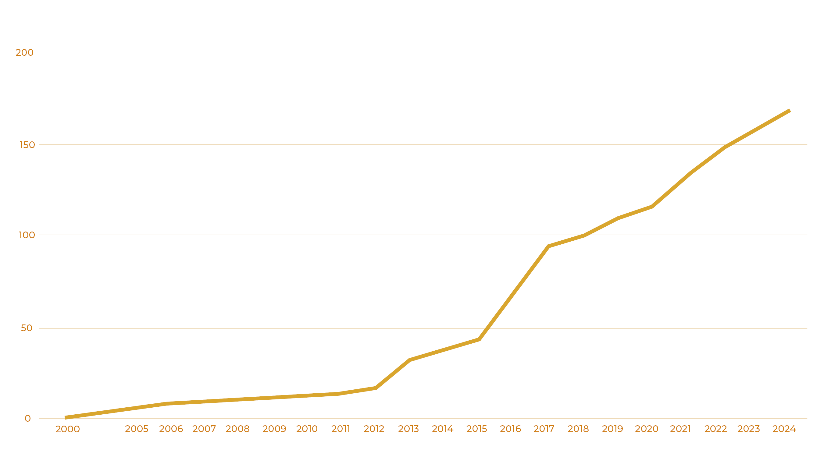 Enligt Ätbarts kartläggning började civilsamhället ta emot överskottsmat från butiker runt år 2000. Detta var då ett förhållandevis ovanligt fenomen. Antalet matbanker har dock ökat stadigt sedan år 2015, vilket illustreras i diagrammet nedan. Den kraftiga ökningen 2015 kan bland annat kopplas till kriget i Syrien samt lanseringen av Agenda 2030:s målsättning om halverat matsvinn. Ökningen efter 2020 speglar inflation, ökad social utsatthet och försvagade sociala skyddsnät.