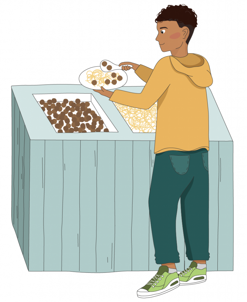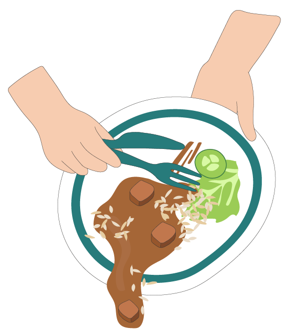 - stökiga måltidsmiljöer (hög ljudnivå eller för lite tid att äta, vilket gör att eleverna tar mer än de hinner eller orkar äta upp)